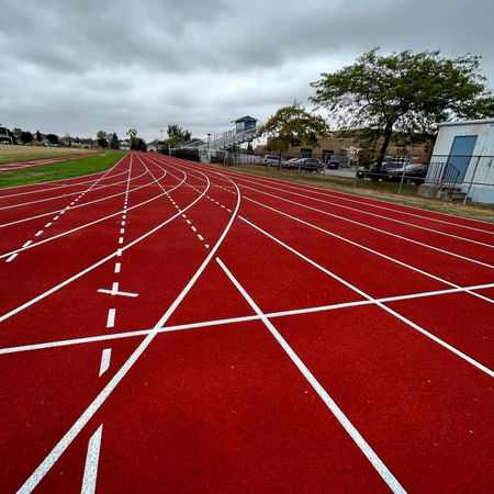 Work included chain link fence replacement, tree removal, sand and long jump pit upgrades, excavation and installation of 10” of granular, concrete curb replacement, new asphalt paving, and surface coating/line painting.